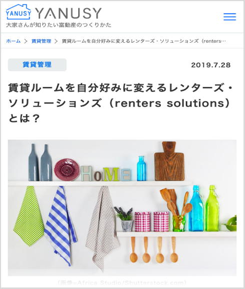 YANUSY(ヤヌシー)は、日本中の不動産オーナー(大家さん)向けに役立つ情報を提供し、「富動産(新しい切り口での資産)」作りをサポートするためのWEBメディアです。「資産運用、不動産投資、賃貸管理、税金、トレンド」の5つのカテゴリーを設け、編集部独自の目線でコンテンツ化し、有益な情報を提供しています。読者は30代~60代を中心に幅広く、デスクトップでの利用が多いことも特徴です。