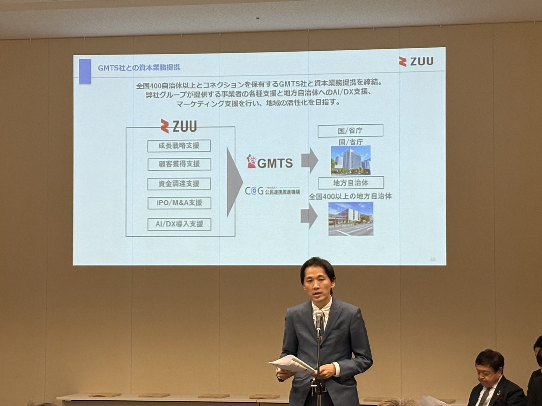 また、本年7月にGMTS社と資本業務提携を行いました。6月の公民連携推進機構のアンケート結果では、52自治体が地域事業者支援を希望したことを受け、今後当社のAI研修やDX支援を活かし、3自治体(奈良県宇陀市・山梨県大月市・和歌山県那智勝浦町)での地域事業者の支援に取り組み、モデルケースとなることを目指します。