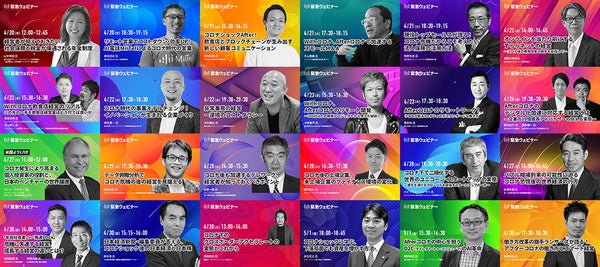 この度、おおよそ1ヶ月間で60本のウェビナーを開催し、リアルタイムの申込みとアーカイブ視聴などを合わせウェビナーページの訪問ユーザが18,000UU、ページビューが27,000PV、リアルタイム視聴者が2,000名へと繋がり、新型コロナウイルスの影響が広がる中、有益な情報取得メディアとして選ばれていることをご報告します。