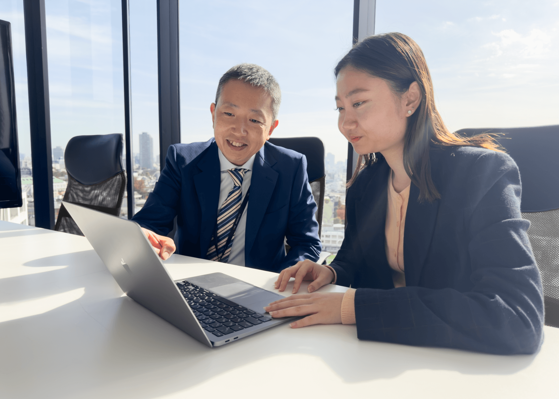 新卒社員は実践的なスキルを学びながら、自ら業務で必要な情報収集を習慣化するなど積極的に行動し、成長していきます。