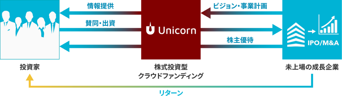 インターネットを通じて多くの人が少額の資金を出して、未上場の新規・成長企業の株式に投資することのできる仕組みです。