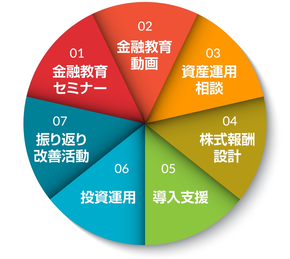- まずは金融教育セミナー(無料)の開催を通して、従業員皆様の金融リテラシーとニーズを把握させていただきます。